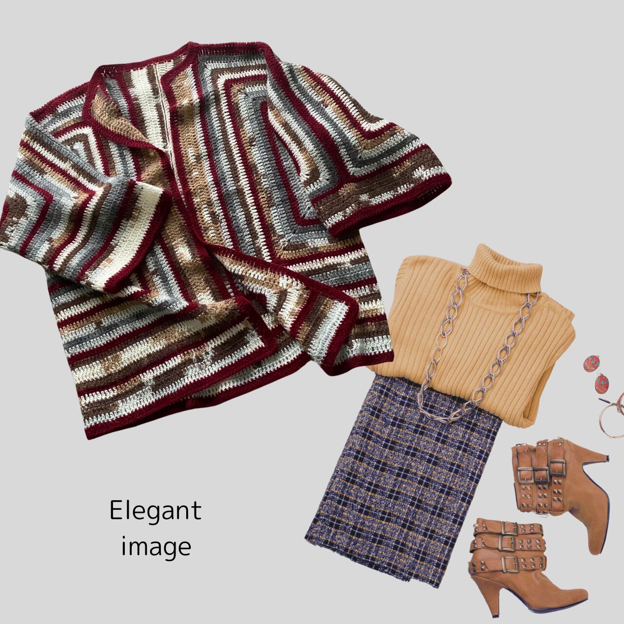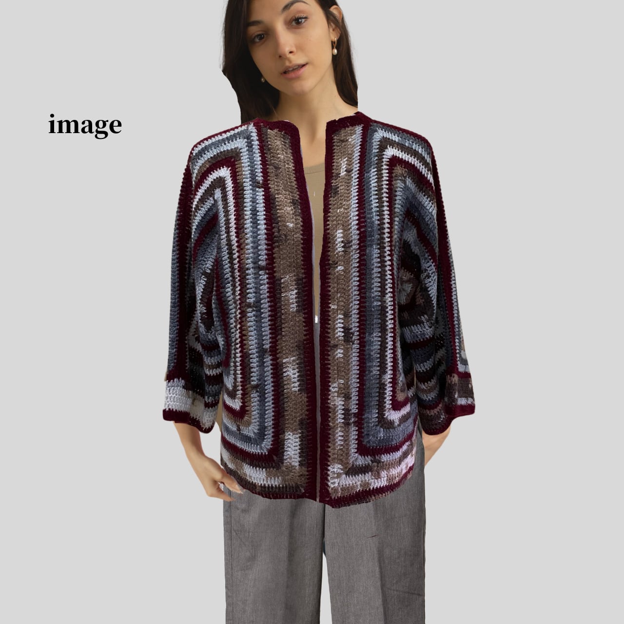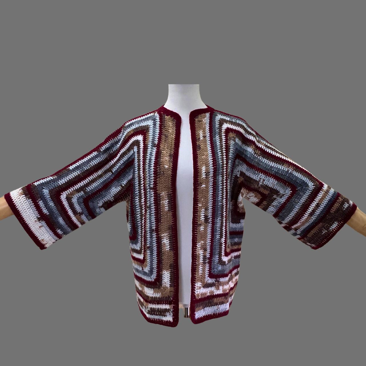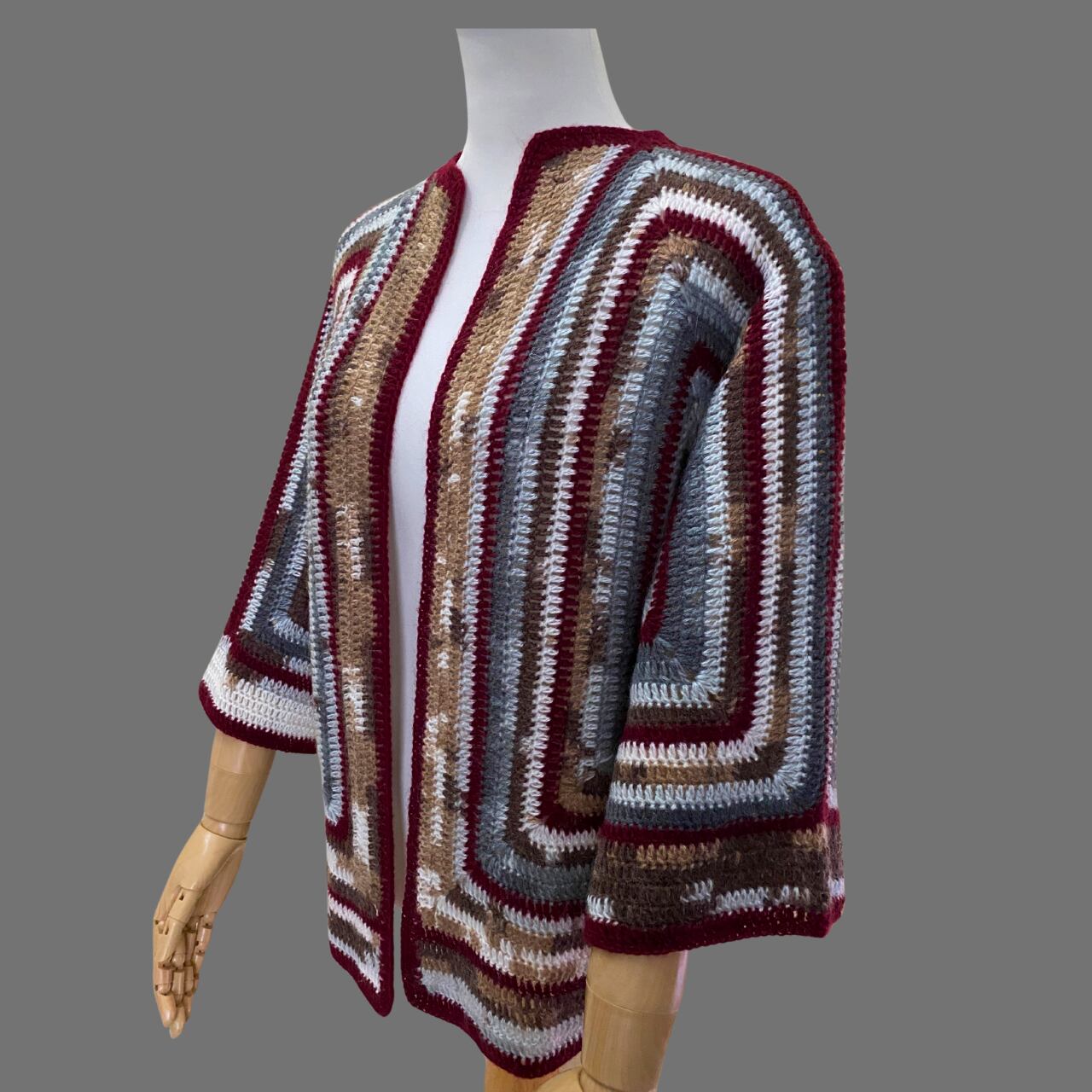 ヘキサゴンカーディガン ボルドーライン